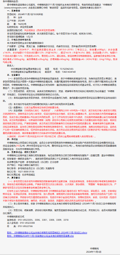 2024年11月7日中儲糧湖南分公司玉米競價采購專場公告
