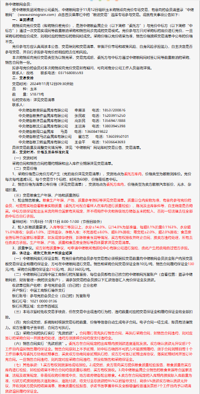 2024年11月12日中儲糧河南分公司玉米購銷雙向競價交易專場公告