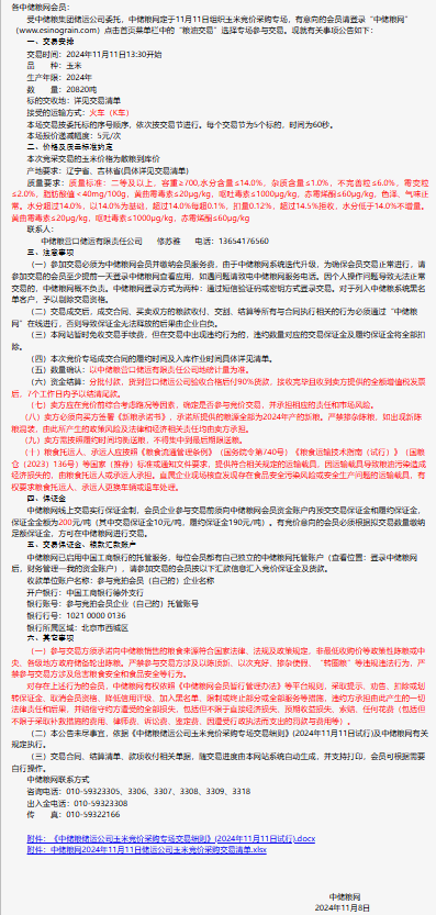 2024年11月11日中儲糧儲運公司玉米競價采購專場公告