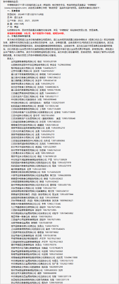 2024年11月12日中儲糧進口玉米(轉基因)競價銷售專場公告