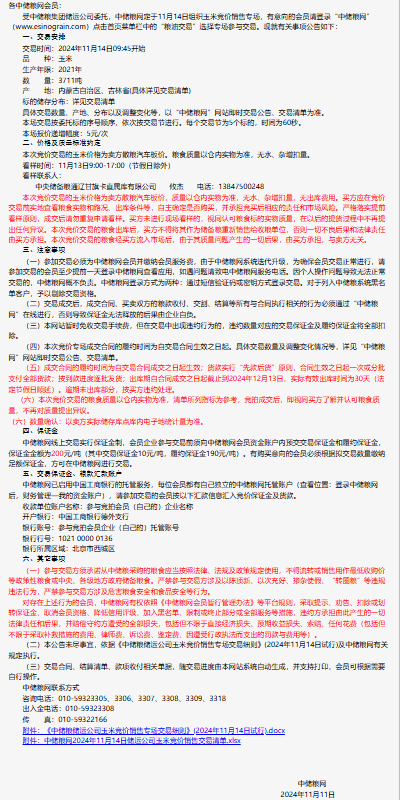 2024年11月14日中儲糧儲運公司玉米競價銷售專場公告