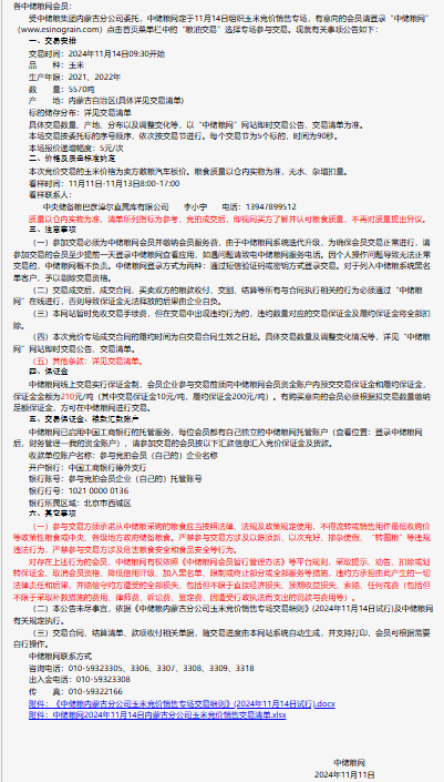 2024年11月14日中儲糧內蒙古分公司玉米競價銷售專場公告