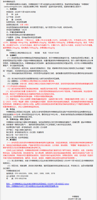 2024年11月14日中儲糧儲運公司玉米競價采購專場公告