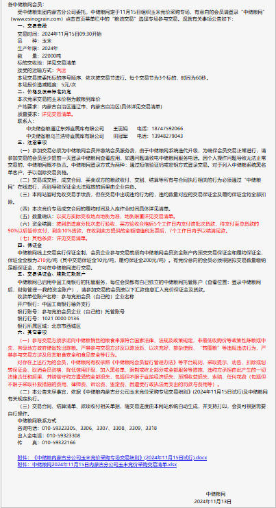 2024年11月15日中儲糧內蒙古分公司玉米競價采購專場公告