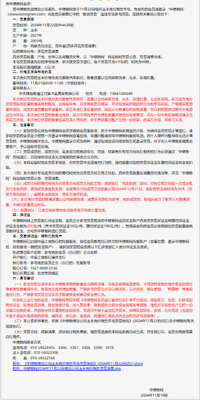 2024年11月22日中儲糧儲運公司玉米競價銷售專場公告