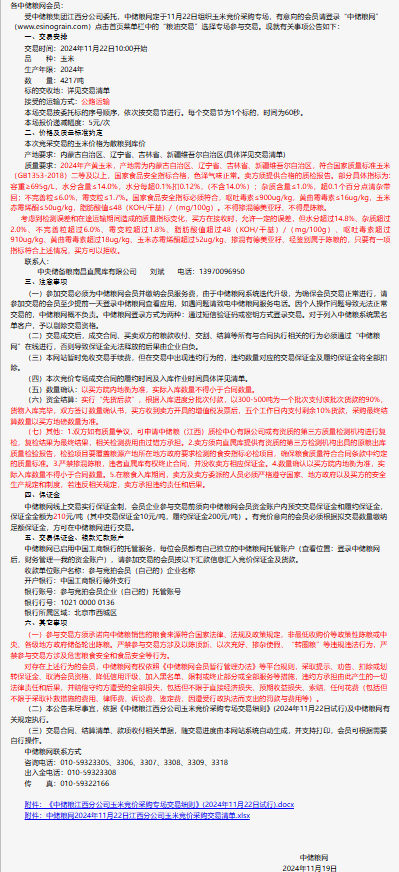 2024年11月22日中儲糧江西分公司玉米競價采購專場公告