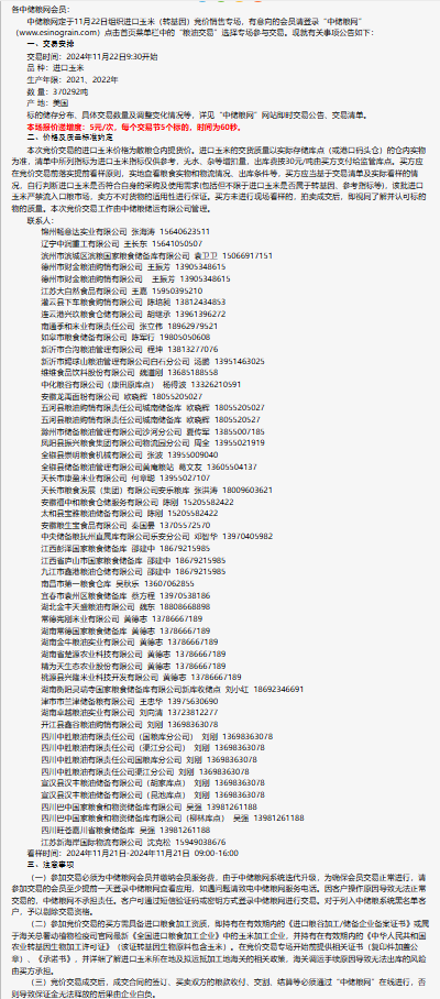 2024年11月22日中儲糧進口玉米(轉基因)競價銷售專場公告