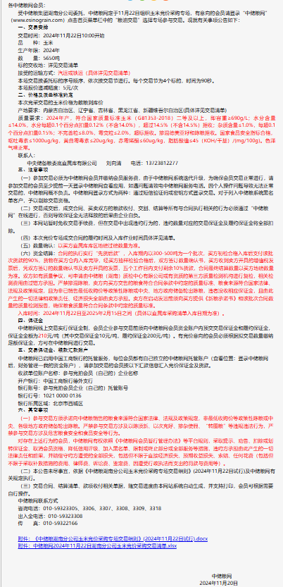 2024年11月22日中儲糧湖南分公司玉米競價采購專場公告