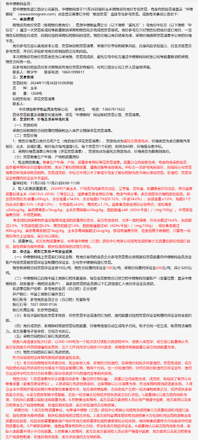 2024年11月26日中儲糧江西分公司玉米購銷雙向競價交易專場公告