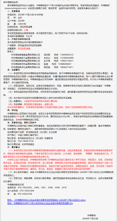 2024年11月25日中儲糧吉林分公司玉米競價采購專場公告