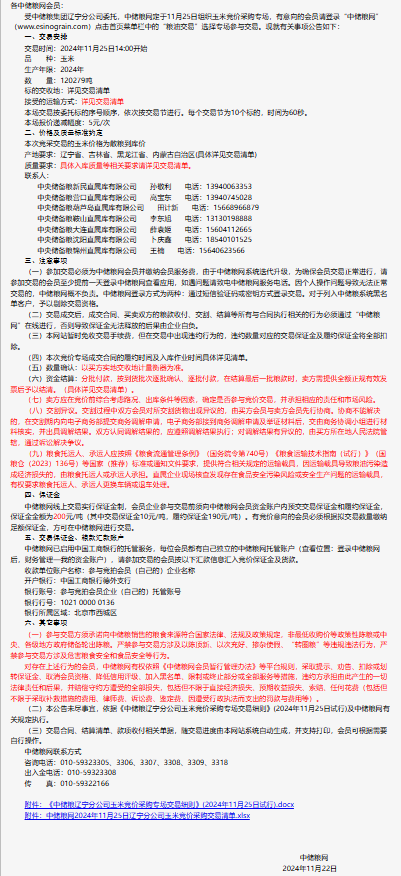 2024年11月25日中儲糧遼寧分公司玉米競價采購專場公告