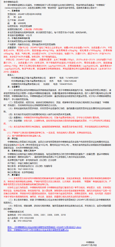 2024年12月3日中儲糧儲運公司玉米競價采購專場公告