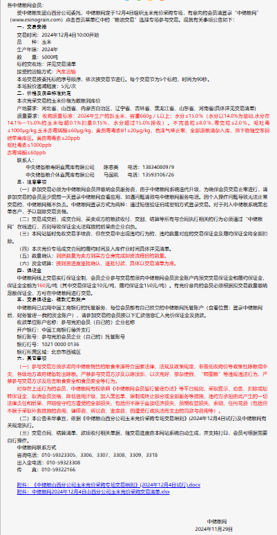 2024年12月4日中儲糧山西分公司玉米競價采購專場公告