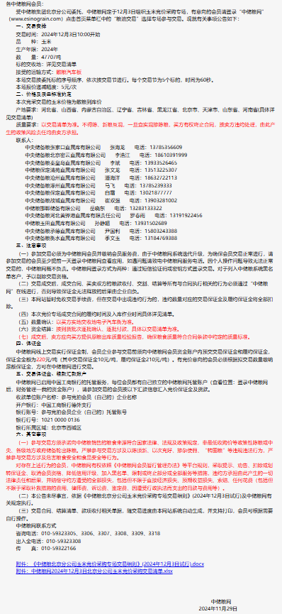 2024年12月3日中儲糧北京分公司玉米競價采購專場公告