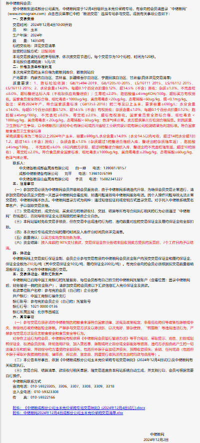 2024年12月4日中儲糧成都分公司玉米競價采購專場公告