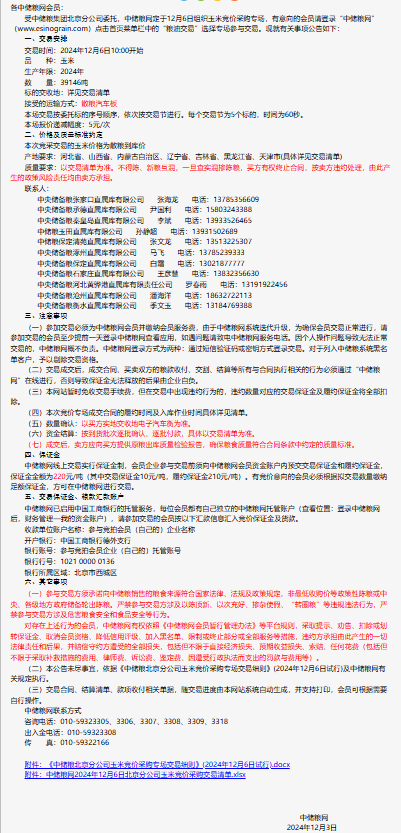 2024年12月6日中儲糧北京分公司玉米競價采購專場公告