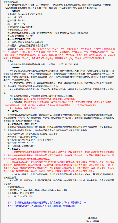 2024年12月5日中儲糧內蒙古分公司玉米競價采購專場公告