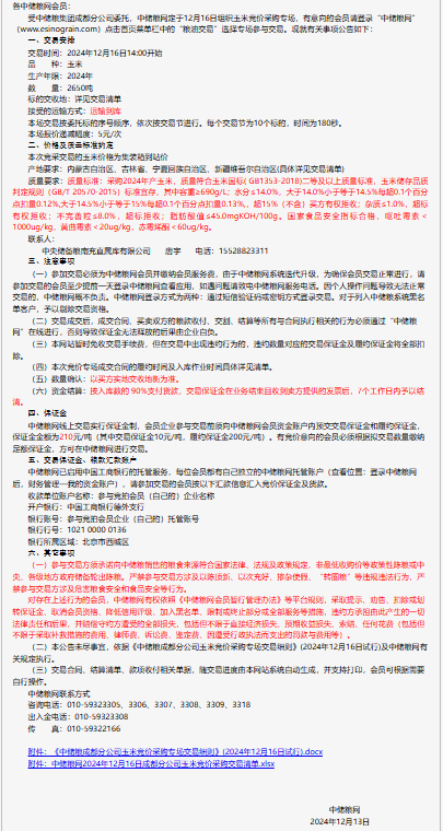 2024年12月16日中儲糧成都分公司玉米競價采購專場公告