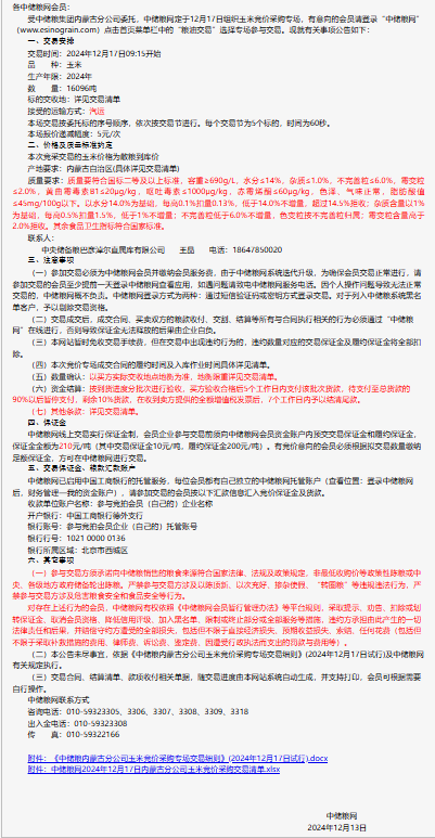 2024年12月17日中儲糧內蒙古分公司玉米競價采購專場公告