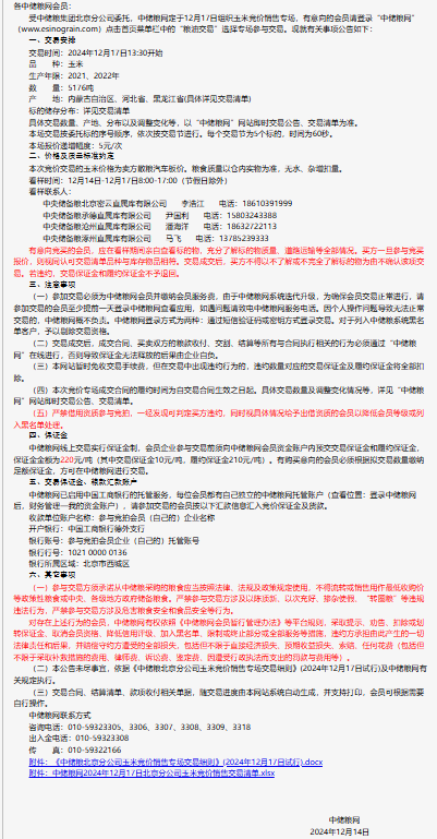 2024年12月17日中儲糧北京分公司玉米競價銷售專場公告