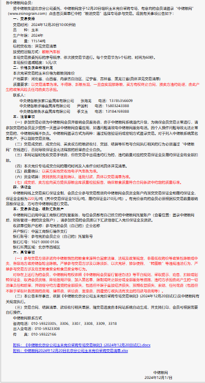 2024年12月20日中儲糧北京分公司玉米競價采購專場公告