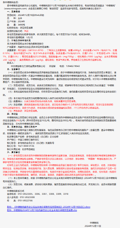 2024年12月19日中儲糧內蒙古分公司玉米競價采購專場公告