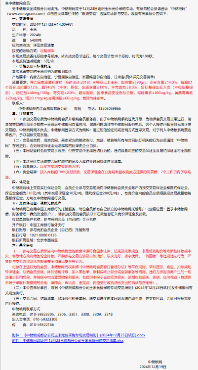 2024年12月23日中儲糧成都分公司玉米競價采購專場公告