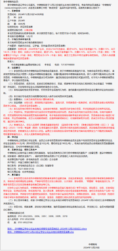2024年12月23日中儲糧遼寧分公司玉米競價采購專場公告
