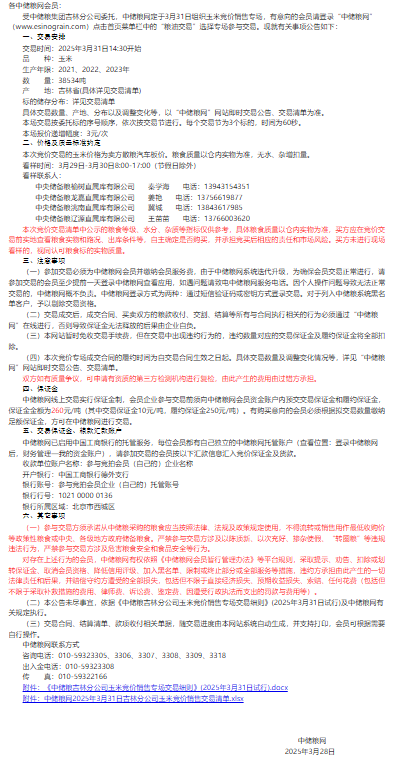2025年3月31日中儲糧吉林分公司玉米競價銷售專場公告