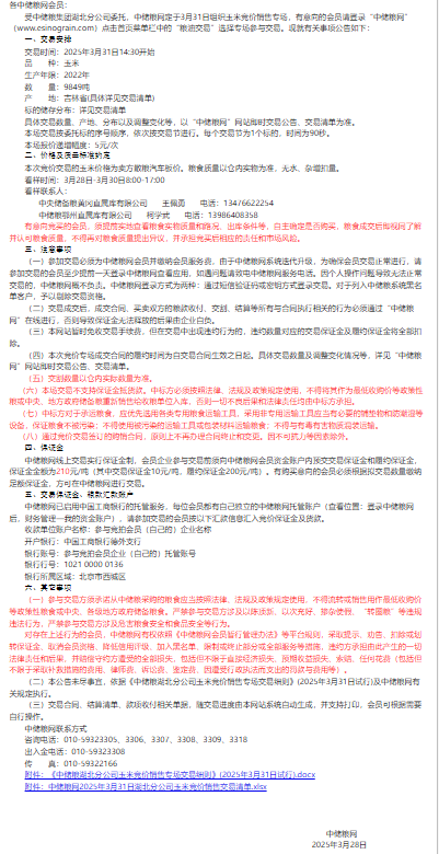 2025年3月31日中儲糧湖北分公司玉米競價銷售專場公告