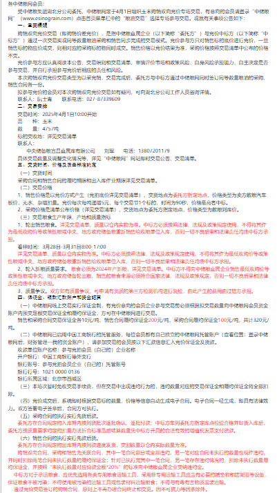 2025年4月1日中儲糧湖北分公司玉米購銷雙向競價交易專場公告