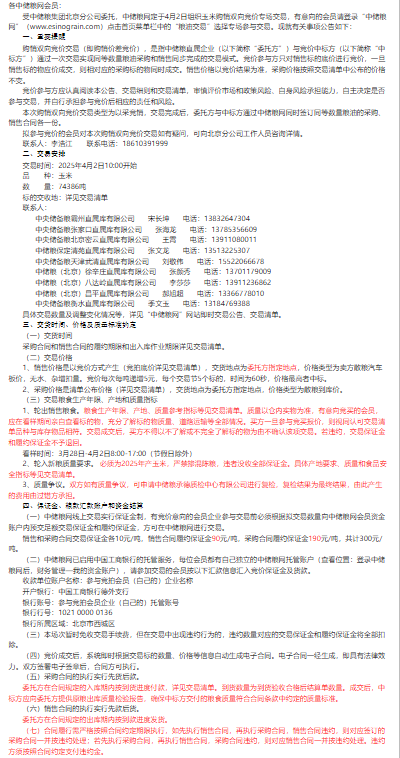 2025年4月2日中儲糧北京分公司玉米購銷雙向競價交易專場公告