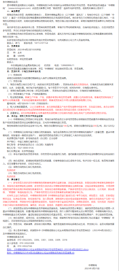 2025年4月2日中儲糧成都分公司玉米購銷雙向競價交易專場公告