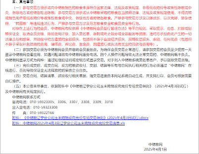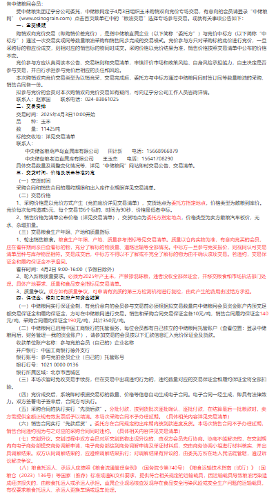 2025年4月3日中儲糧遼寧分公司玉米購銷雙向競價交易專場公告