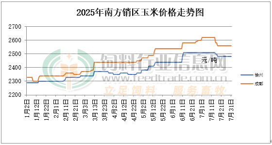 2025年7月份南方銷區玉米價格走勢圖