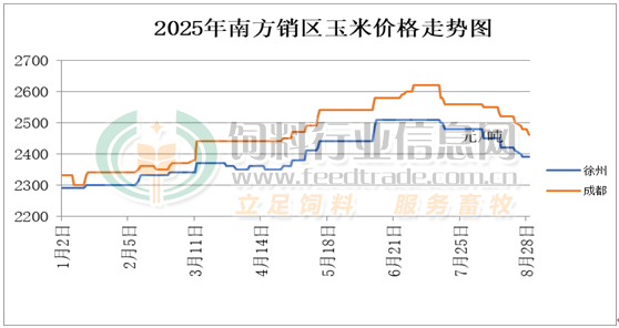 2025年8月份南方銷區玉米價格走勢圖