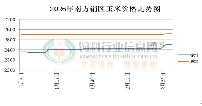 2026年2月份南方銷區玉米價格走勢圖