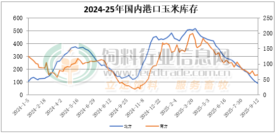 截至9月12日北方港口四港玉米庫存共計約91萬噸。北方港口集港量較少,庫存水平同比偏低。截止周五廣東港口玉米庫存65萬噸,飼企觀望心理增強,整體采購量仍維持低位,內貿玉米日均出貨在3.6萬噸。