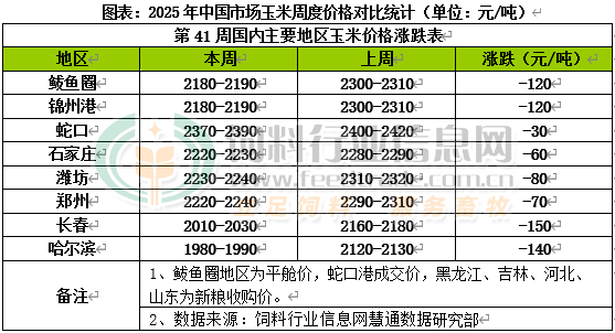 39、隨著新作玉米收割進度加快,而進口國需求放緩,烏克蘭玉米價格已跌至2025年內最低水平。10月6日,烏克蘭玉米FOB報價為213美元/噸,裝船日期11月3日至17日,低于8月6日的241美元/噸,意味著兩個月內下跌了28美元/噸。