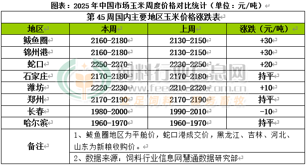 國內主產區潮糧銷售壓力明顯減弱,基層種植戶惜售情緒增強,中儲糧持續收購帶動部分貿易商入市積極性升,加工企業暫未大規模建庫,價格整體窄幅偏強調整。東北產地新玉米繼續上市,受物流影響北方港口晨間集港量相對一般,貿易商發運以合同糧居多,有貿易商補貨收購價格小幅上調,其中錦州港周比上漲30元/噸;南方港口內貿玉米到貨趨增,谷物總庫存依然較高,受盤面走高,到貨成本高支撐貿易商報價趨強,其中蛇口港周比上漲20元/噸。國內玉米現貨價格基本穩定,局部價格小幅震蕩。東北產區新玉米收獲進入尾聲,新玉米增產質量好,種植戶心理預期價格較高,受氣溫下降影響,儲存條件改善潮糧出售壓力有所緩解,種植戶惜售情緒升溫,市場可流通糧源階段性減少,烘干塔開塔數量有所增多,貿易商收潮糧烘干待價漲,中儲糧建庫現象增多,價格跌勢放緩,其中長春周比下跌10元/噸;華北黃淮產區新玉米收割已經過九成,天氣晴好利于新玉米晾曬,潮糧被動拋售已經結束,基層惜售情緒升溫,加之物流因素使東北糧流入減少,企業紛紛提價促量,隨著玉米漲至相對的高位,基層種植戶出售意愿增加,基層上量逐漸增多,貿易商還在觀望建庫,隨收隨走,用糧企業采購以滿足剛性需求為主,收購價格區間震蕩,其中濰坊周比上漲10元/噸。