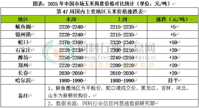 25、歐洲貿易商表示,韓國飼料協會(KFA)周二通過國際招標買入約6.5萬噸動物飼料玉米,產地料來自美國。這批貨物由KFA釜山分會一次性訂購,預計于2026年2月運抵韓國,每噸成本加運費(C&F)約252.48美元,另外每噸還需支付1美元的額外港口卸貨費。