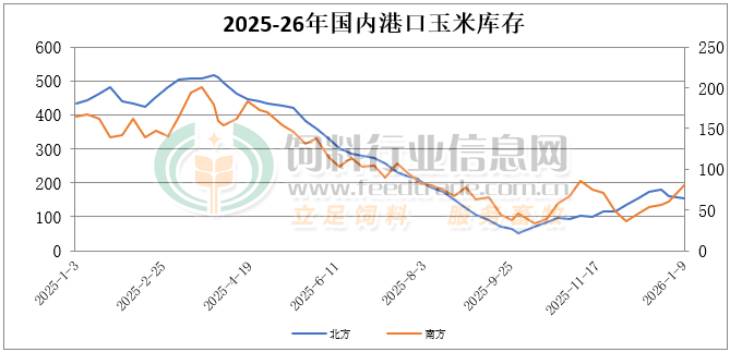 截至1月9日北方港口四港玉米庫存共計約156萬噸。北方港口到貨糧源多為貿易企業自集為主,庫存累庫尚未形成。截止周五廣東港口玉米庫存80萬噸,內貿玉米日均出貨在3.8萬噸。飼料企業有簽訂了部分遠期合同,大多消耗原有玉米庫存,港內現貨成交較一般。
