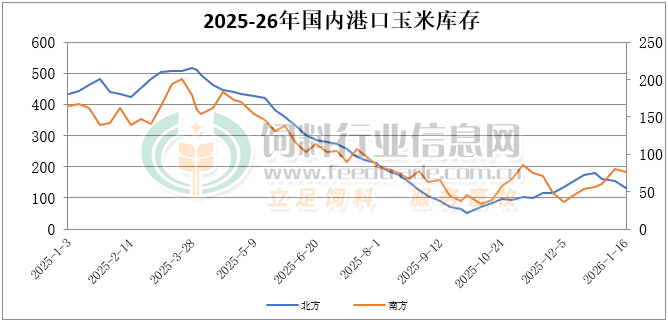 截至1月16日北方港口四港玉米庫存共計約132萬噸。北方港口到貨相對一般,玉米庫存繼續下降。截止周五廣東港口玉米庫存76萬噸,內貿玉米日均出貨在3.8萬噸。飼料企業有簽訂了部分遠期合同,大多消耗原有玉米庫存,港內現貨成交較一般。