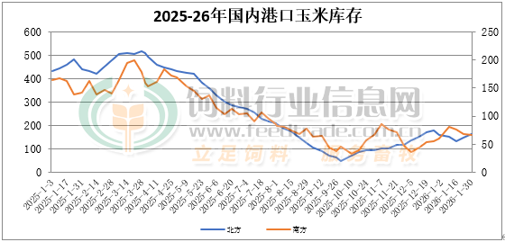 截至1月30日北方港口四港玉米庫存共計約163萬噸。北方港口到貨情況較好,晨間集港超過3萬噸。截止周五廣東港口玉米庫存66萬噸,內貿玉米日均出貨在4.3萬噸。飼料企業備貨需求減弱,執行合同為主。