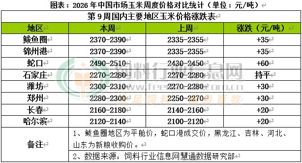 8、2月24日,中國臺灣省飼料原料采購集團MFIG表示將舉行國際招標,尋購最多65,000噸飼料玉米。投標截止日期為2月25日??山邮艿漠a地包括阿根廷、巴西、南非或9、截至2月19日,美國34個地區的玉米酒糟粕(DDGS)報價平均為169美元/噸,比一周前上漲3美元。